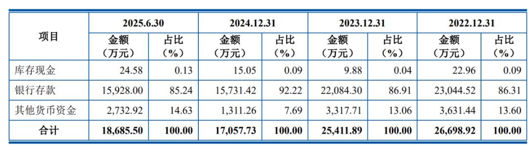 本次IPO中,尚水智能拟募集资金约5.87亿元,用于扩产、研发及补充流动资金,其中1.5亿元的“补充流动资金”计划合理性引发市场质疑。招股书显示,截至2022年末、2023年末、2024年末、2025年6月末,公司货币资金余额分别为2.67亿元、2.54亿元、1.71亿元、1.87亿元,交易性金融资产分别为1.5亿元、0亿元、0.1亿元、0.2亿元,短期借款仅为0万元、0万元、10万元、1125.64万元,现金类资产完全能够覆盖短期债务,资金链状况良好。在资金储备看似充裕的背景下,大额募资补流的商业逻辑亟待公司给出更有说服力的解释。