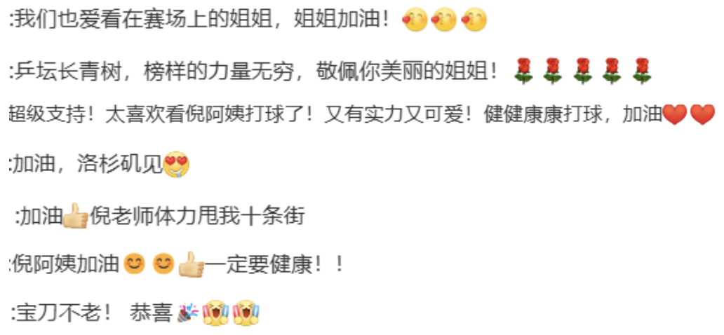对于倪夏莲的复出,许多网友感慨于她对乒乓球纯粹的热爱,赞扬她是不断进取、笑意人生,活到老拼搏到老的典范,网友们也纷纷表达了敬佩与支持。