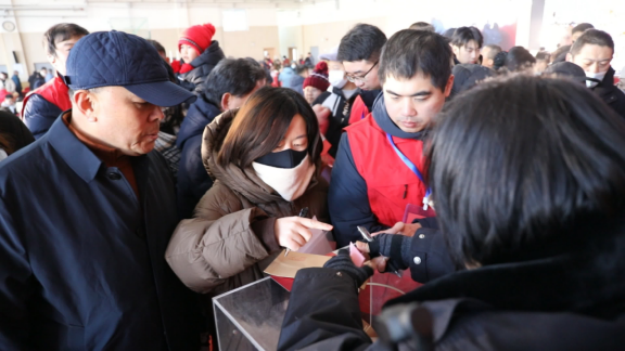 继12月6日河崖安置区抓阄后,12月14日,河西安置区举行抓阄仪式。红灯笼高高挂起,红绸舞动,加上一张张带着热切的笑脸,现场充满喜庆的氛围。当天一大早,居民们大都全家出动,早早赶来抓阄。大家按顺序上前,从抽签箱中抓取决定号码的纸条。每一次宣读房号,都伴随一家人的欢呼。