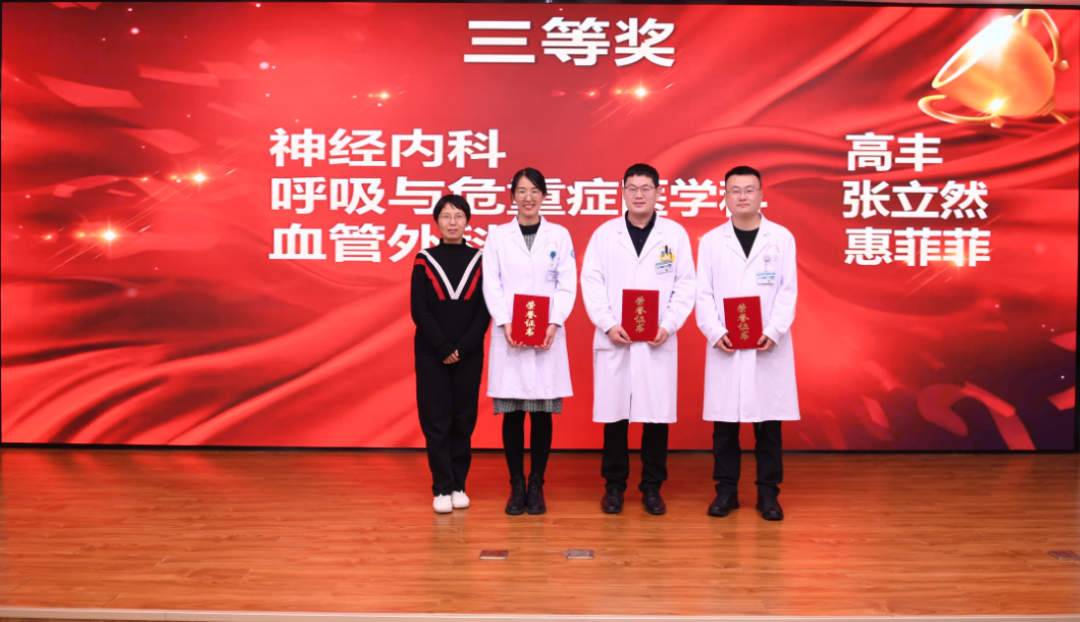 经过评委组的严格评审,肾内科李媛凭借出色的教学表现斩获一等奖;心血管内科岳福伟、呼吸与危重症医学科王敏荣获二等奖;神经内科高丰、呼吸与危重症医学科张立然、血管外科惠菲菲荣获三等奖。