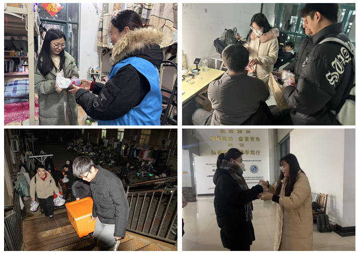 小温暖传递大热爱,小细节彰显大情怀,暖意蔓延,爱意传递,全员育人格局在此刻形成合力。许多考研同学表示,在紧张的复习之余,收到学校这份实实在在的关怀,倍感温暖和鼓舞,仿佛注入了一股新的动力。现场,还有部分学院辅导员前来参与发放并与同学们交流,询问备考情况,为他们打气加油,叮嘱大家注意身体,劳逸结合。一句句关心的话语,一份份用心的餐食,让寒冷的冬日校园充满了暖意。