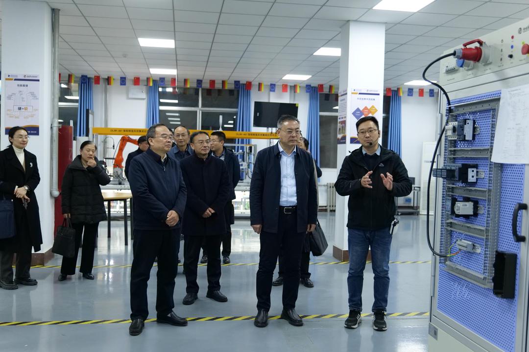 座谈交流前,考察团先后参观了学校的智能制造系实训基地、海尔智家产教融合实训基地以及全国职业院校技能大赛一等奖化工生产技术大赛实训场地,详细了解实训设备配置、教学实训组织实施以及产教融合与校企合作模式创新情况。