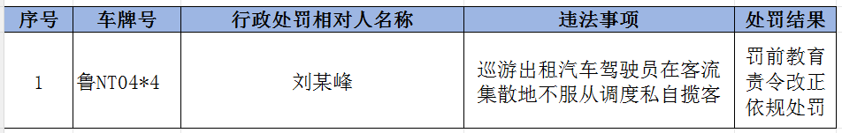 为进一步加大对无证非法营运“黑出租”“黑网约车”的打击力度,切实提升出租汽车行业的整体服务水平与质量,保障道路运输客运市场稳定、健康、有序发展,近期,德州市交通运输综合执法支队在主城区范围内共查处违法违规行为13起,并予以曝光,希望广大从业者能够高度重视,引以为戒。现将具体情况通报如下:
