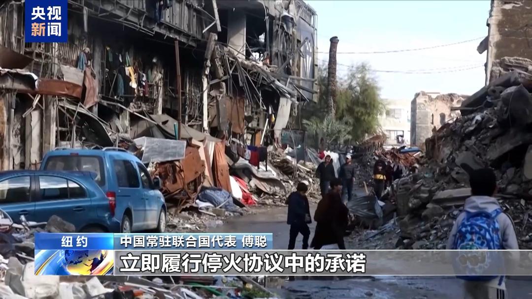 中国常驻联合国代表 傅聪:中方呼吁有关各方,特别是以色列,立即履行停火协议中的承诺。停止采取加剧紧张局势的行为,推动实现真正的全面持久停火,有关斡旋方应采取行动,保障停火协议的落实。
