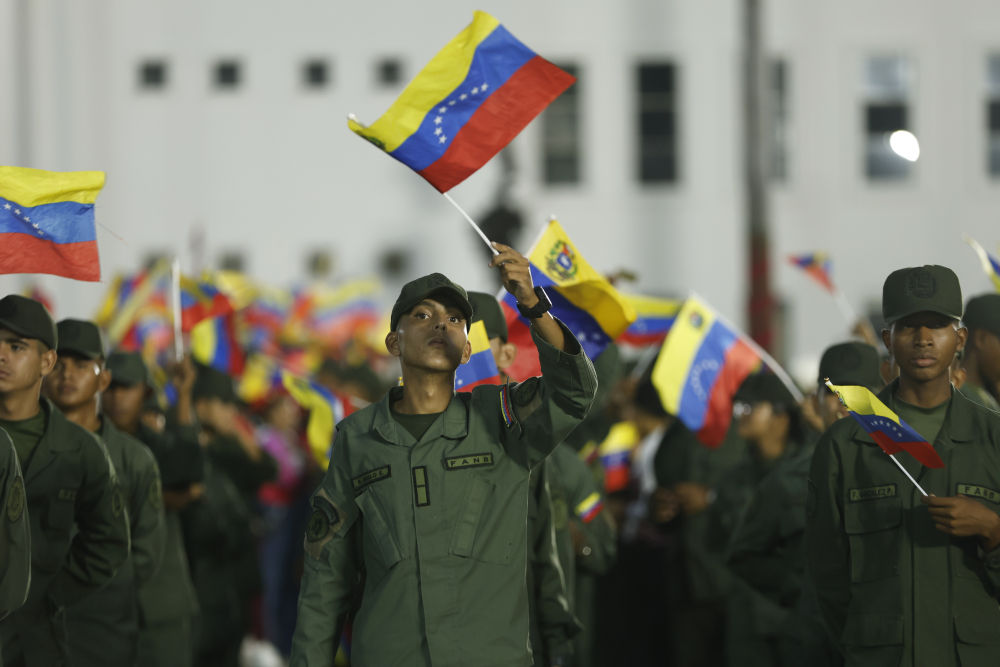 11月25日,委内瑞拉玻利瓦尔国民武装部队成员参加在加拉加斯举行的游行活动。新华社