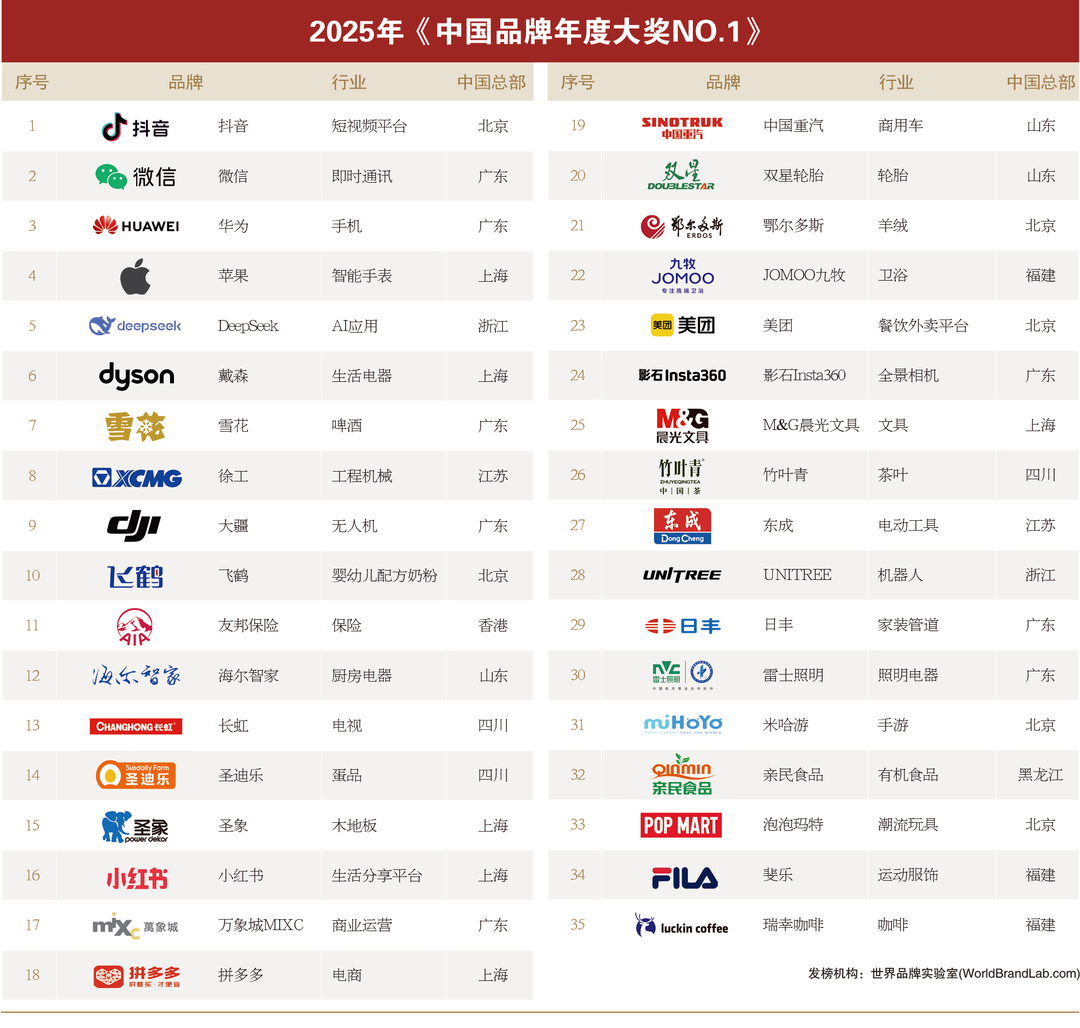 2025年“中国品牌年度大奖”评选在“世界经理人峰会”上隆重揭晓。这项被誉为“中国品牌奥斯卡”的权威奖项,由世界品牌实验室(World Brand Lab)于12月17日在香港颁发。华为、雪花、徐工、圣象、飞鹤、中国重汽、海尔智家、雷士照明、九牧、双星轮胎、竹叶青和东成等35个在中国经济舞台上表现突出的领军品牌,荣膺“2025年中国品牌年度大奖”(NO.1)。欧洲工商管理学院(INSEAD)前学术院长、讲座教授齐夫•卡门(Prof. Ziv CARMON)、麻省理工学院(MIT)数字供应链转型实验室主任玛丽亚•萨恩斯(Prof. Maria SAENZ),以及台湾辅仁大学织品服装学院讲座教授王婧(Prof. Jane WANG)出席峰会并发表主题演讲。