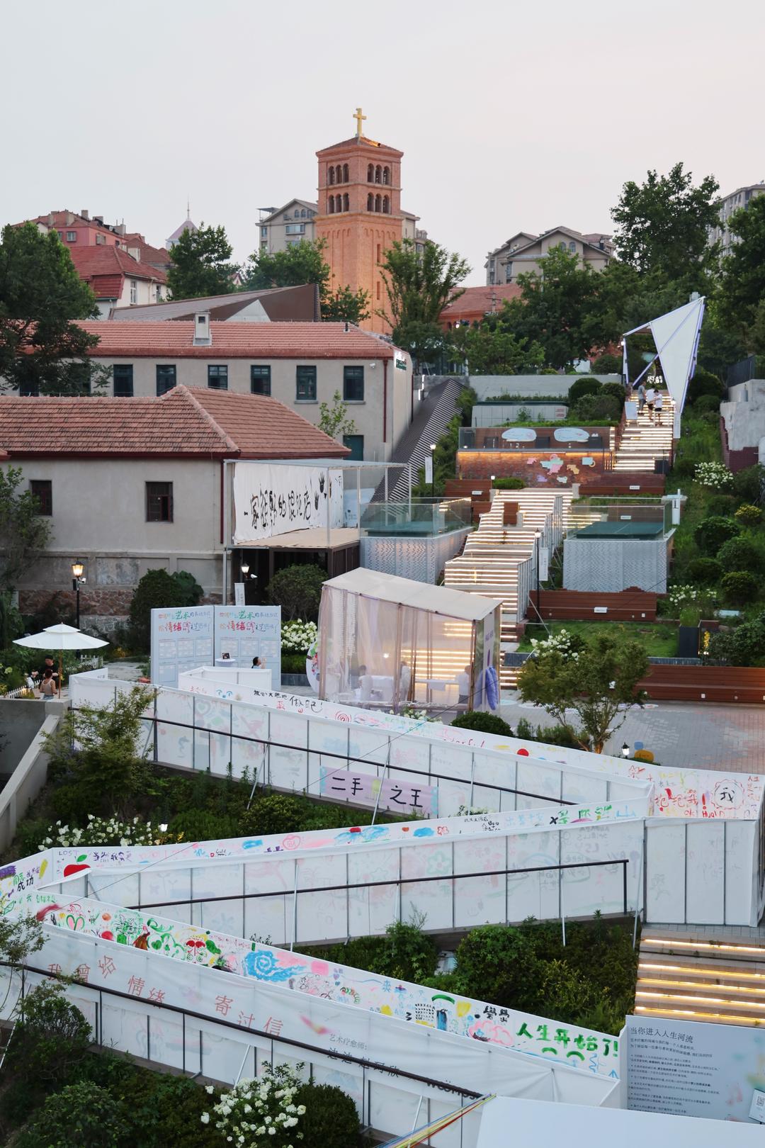 漫步在蜿蜒的马牙石坡道上,两侧是复古与现代交织的里院建筑。孩子们在“文化梯田”上追逐嬉戏,年轻人在设计师品牌店里流连忘返,老人们坐在“无界剧场”旁回忆往昔……如今的“波螺油子艺术谷”在城市更新的浪潮中烟火重燃,蜕变成老城活力消费的新地标。