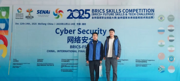 12月13日,2025金砖国家职业技能大赛(金砖国家未来技能和技术挑战赛)网络安全赛项国际总决赛在潍坊工程职业学院落幕。枣庄科技职业学院信息工程学院参赛教师颜实、吕泗霖组成的参赛队历经山东省选拔与国际竞技,最终斩获全国总决赛一等奖及国际总决赛优胜奖。指导教师张峰连、张艺耀获评“优秀指导专家”。