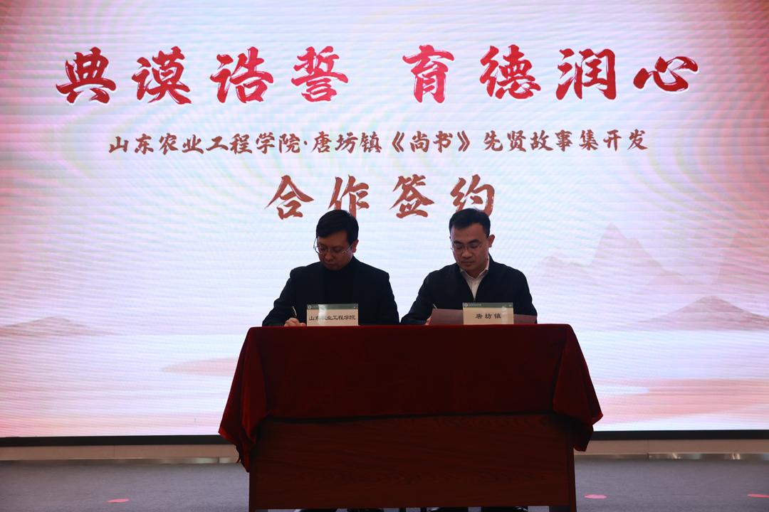 活动中,唐坊镇发布了 “‘传习古训·躬行新程’——《尚书》文化周主题研学矩阵”;举行了“典谟诰誓·育德润心”——山东农业工程学院·唐坊镇《尚书》先贤故事集开发合作签约仪式,以及“乡村儒学大讲堂”特聘讲师聘书颁发仪式。