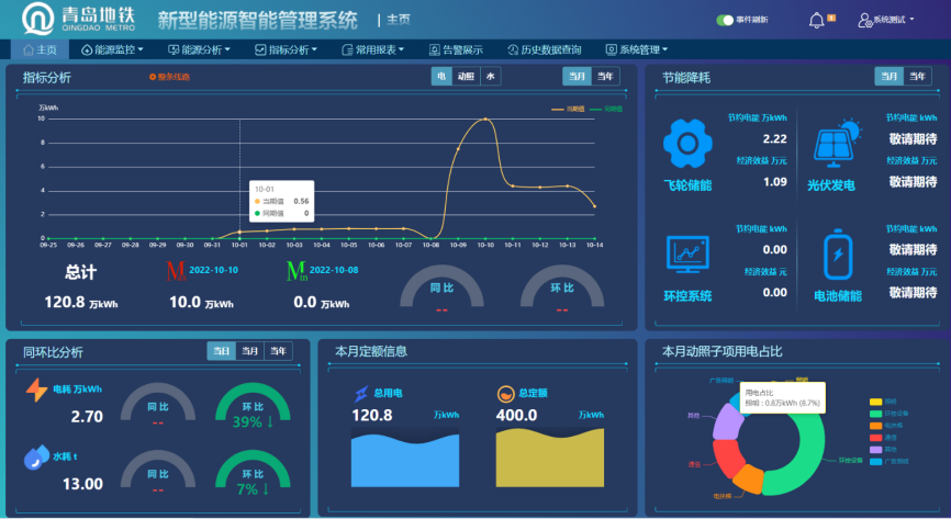 围绕这一目标,青岛地铁以“能源智控、智绿融合”为核心理念,构建“人工智能+绿色城轨”双向驱动的新型能源体系,通过“源网荷储控”一体化协同与数字化赋能,实现绿电引入、电网互联、负荷调配、储能增效的全链条智能化管控,打造新型能源体系智慧大脑。同时,建设智能调控型虚拟电厂,全面应用智慧能源管控,深度推进多系统协同节能。