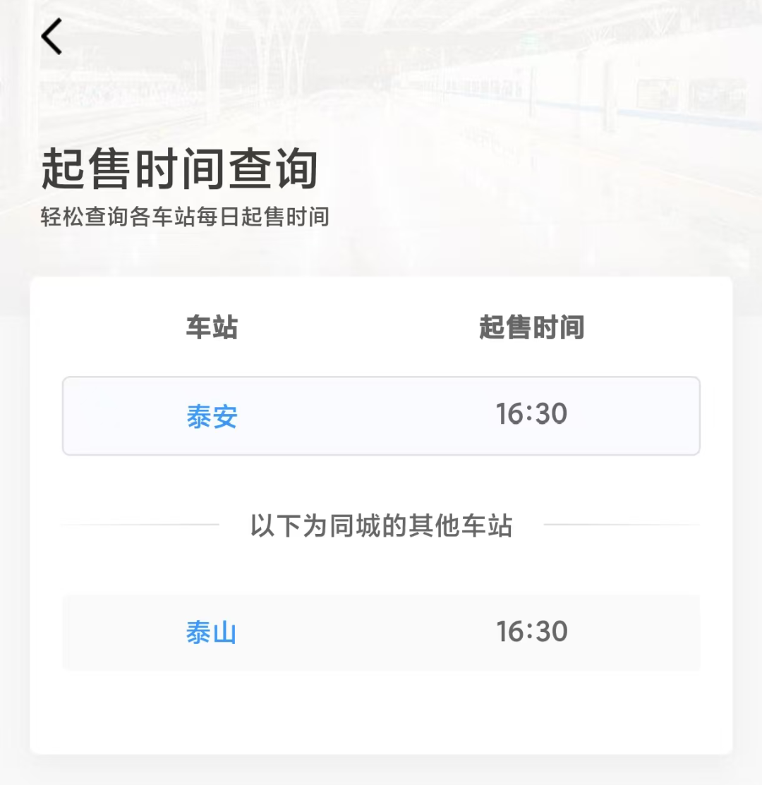 ✅泰安各车站起售时间
