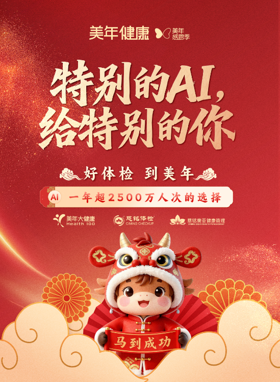 二十一年来,美年健康始终坚信:每个人的健康都值得被特别对待。在这个充满感恩的季节,让我们用“特别的AI”守护“特别的你”,因为您的健康,值得我们用心守护。愿这份特别的健康守护,成为这个冬天最温暖的礼物。把健康祝福,装进特别的新春礼盒,让健康祝福以最温暖的方式传递给在乎的人,让健康陪伴更长久!