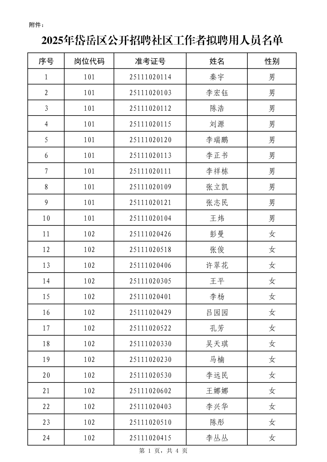 根据《2025年岱岳区公开招聘社区工作者公告》的规定,经笔试、面试、体检、考察等程序,现将拟聘用人员名单(见附件)予以公示。