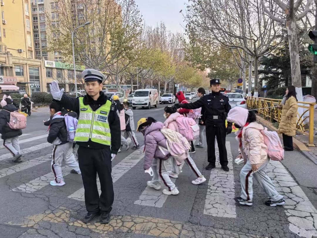 上放学高峰,双警在36所校园门口及周边主要路段定点值守,一方面,核查外来人员身份、登记进出车辆,引导学生有序入校离校,特别是协助幼儿园核对接幼儿送信息;另一方面,疏导交通流量,整治违规停车、占道经营,特别是对16所位于主干道旁的校园,额外增派警力,开辟学生专用通行通道,保障接送车辆即停即走,实现不发生人员拥挤、交通堵塞等安全事件。