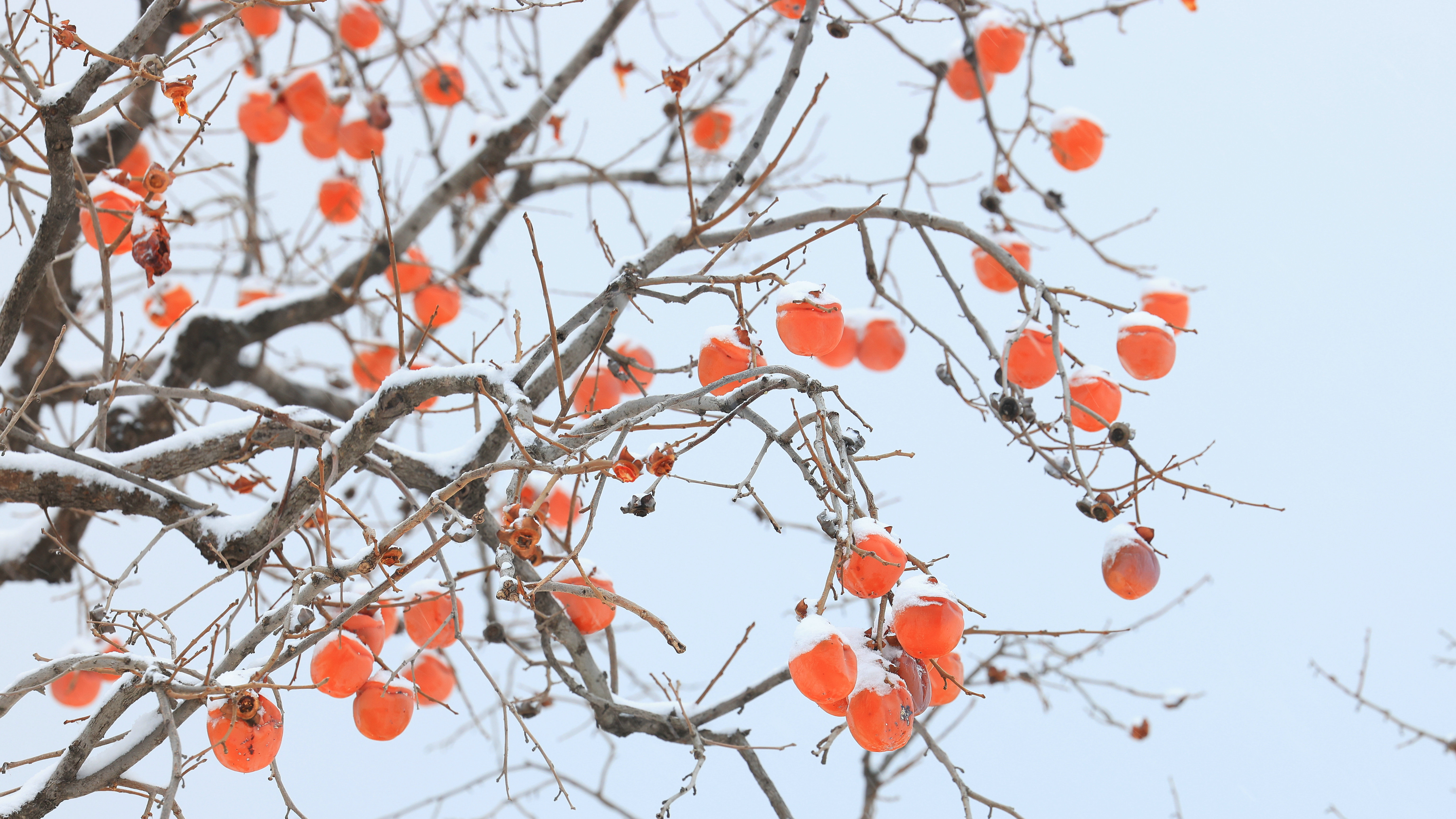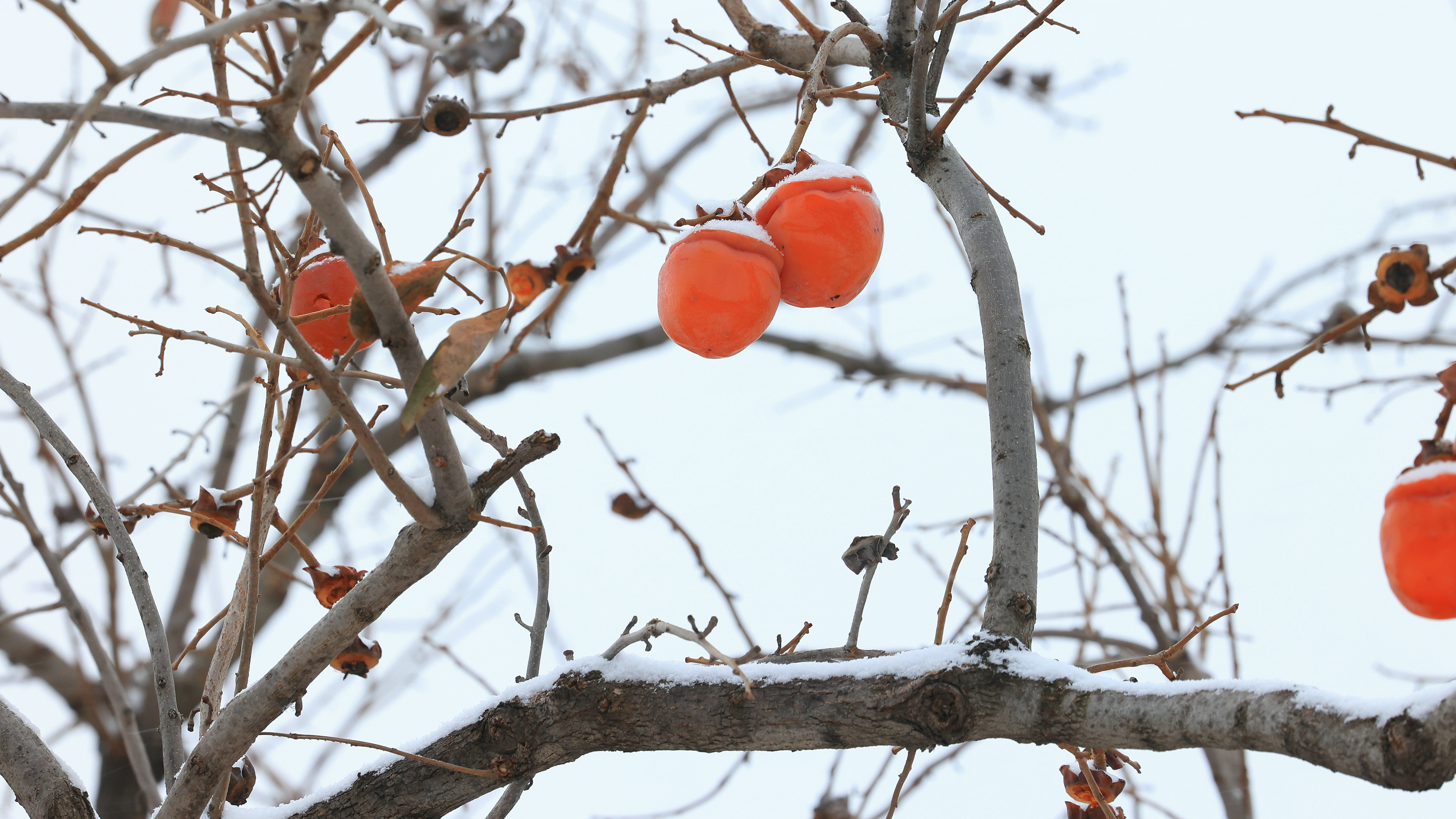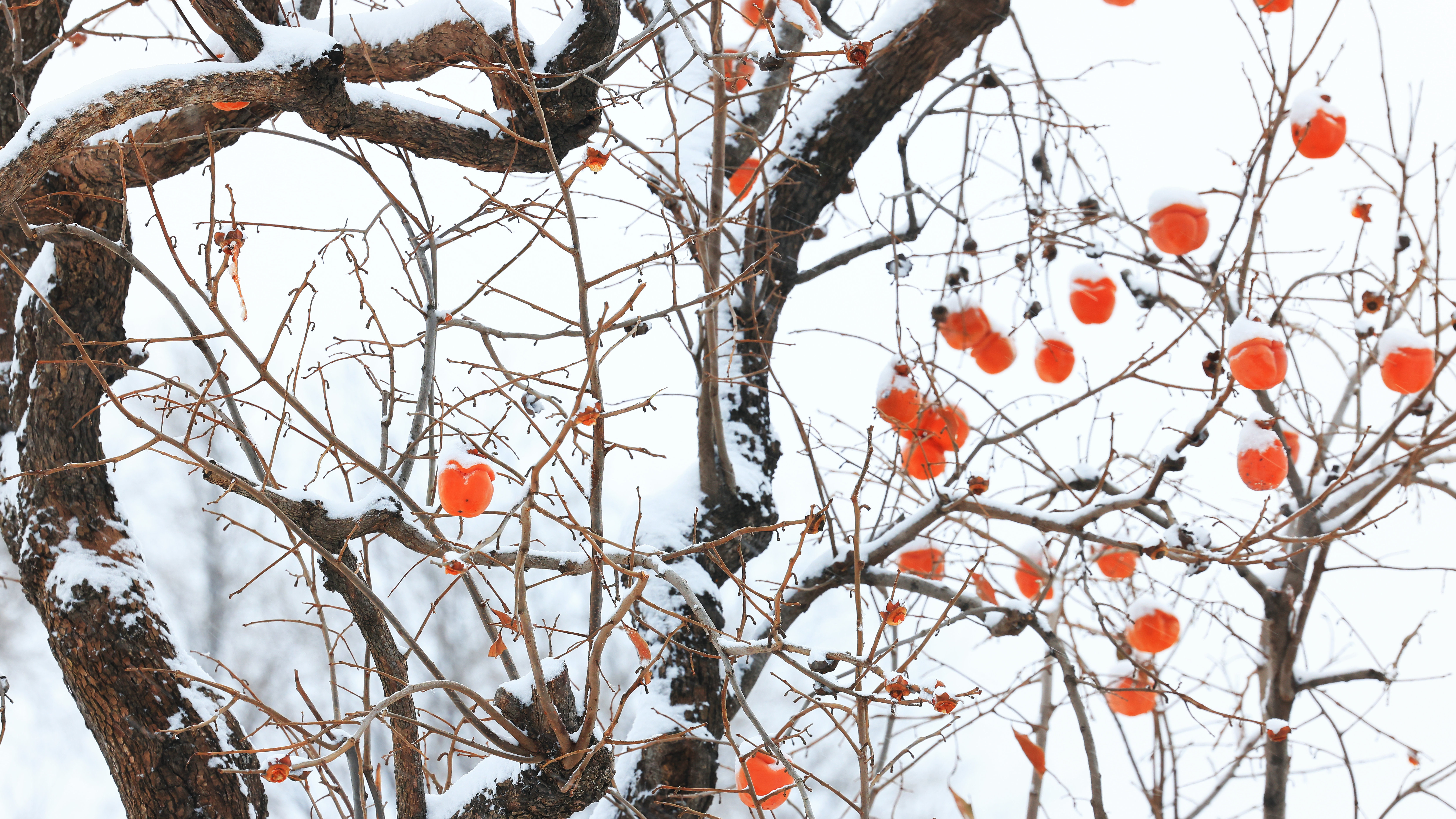 冬雪风景中红柿挂枝头为您送去杮柿如意的美好祝愿山东高速股份潍莱运管中心梁晓拍摄