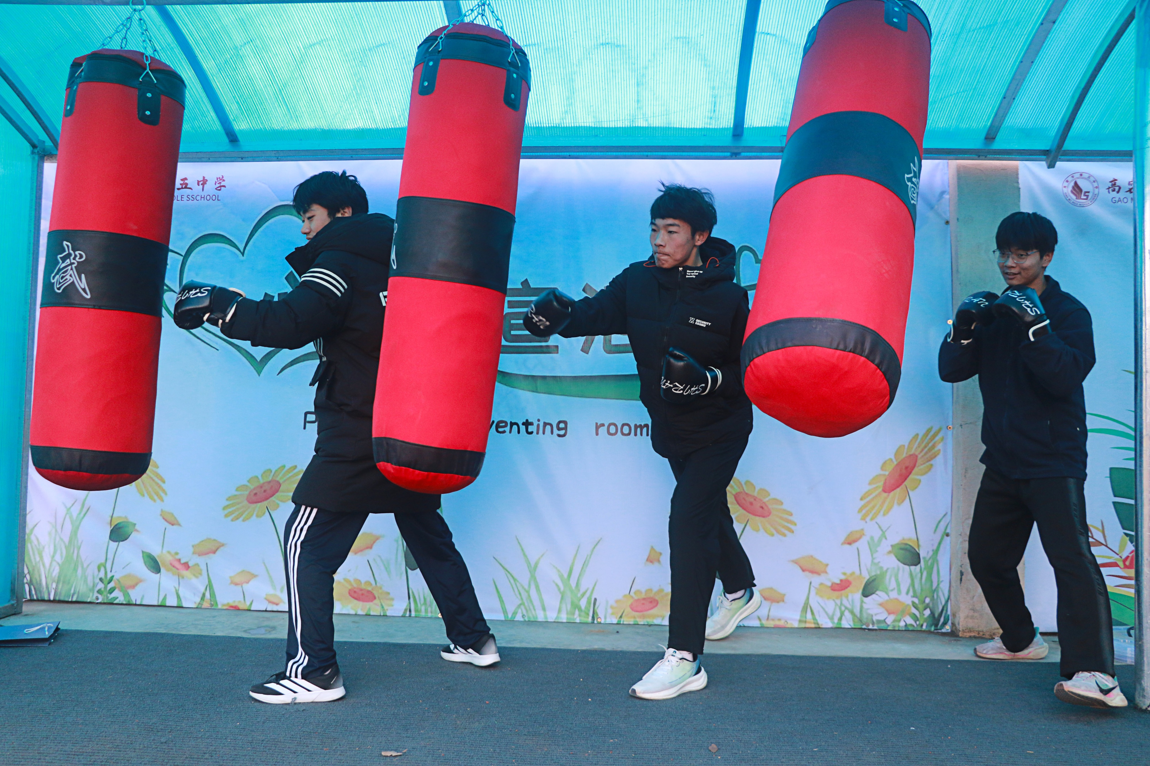 近日潍坊高密市第五中学创新推出心理减压角巧妙将拳击运动融入心理健康教育学校通过定制安全防护方案和配备专业辅导人员为学生提供安全有效的压力释放途径大众新闻记者都镇强通讯员李海涛