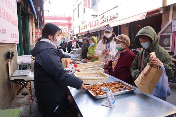 冬日的槐荫,寒风挡不住烟火气的温情——老屯便民市场里,一家糖溜小店前的队伍从早排到晚,周末更是顺着摊位延伸到市场路口,甜香飘得老远,引得路人忍不住探头张望。“上次买了两袋,家里孩子追着要,今天特意多买几袋!”家住历城区的市民拎着刚到手的糖溜马蹄,笑着往回走;还有从潍坊、北京、河北赶来的食客,专程为这口甜蜜跑一趟。上线仅一个月,这对80后夫妻的糖溜生意就火了,除了现场排队,跑腿订单堆在摊位旁,夫妻俩手脚不停地打包,要让这份甜蜜送到济南城的各个角落。