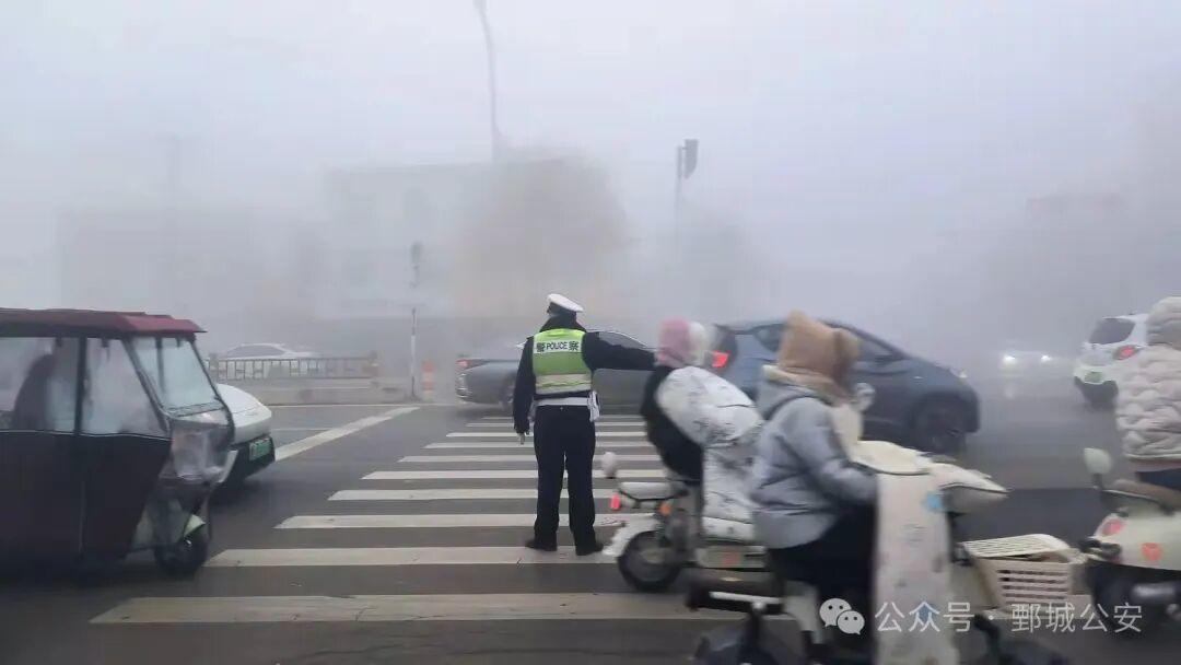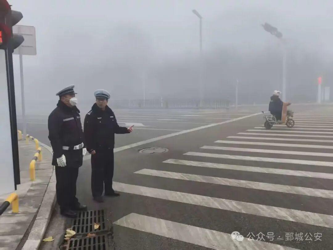 冬季守护|鄄城公安交警积极应对“第一场雾” 全力守护群众安全出行