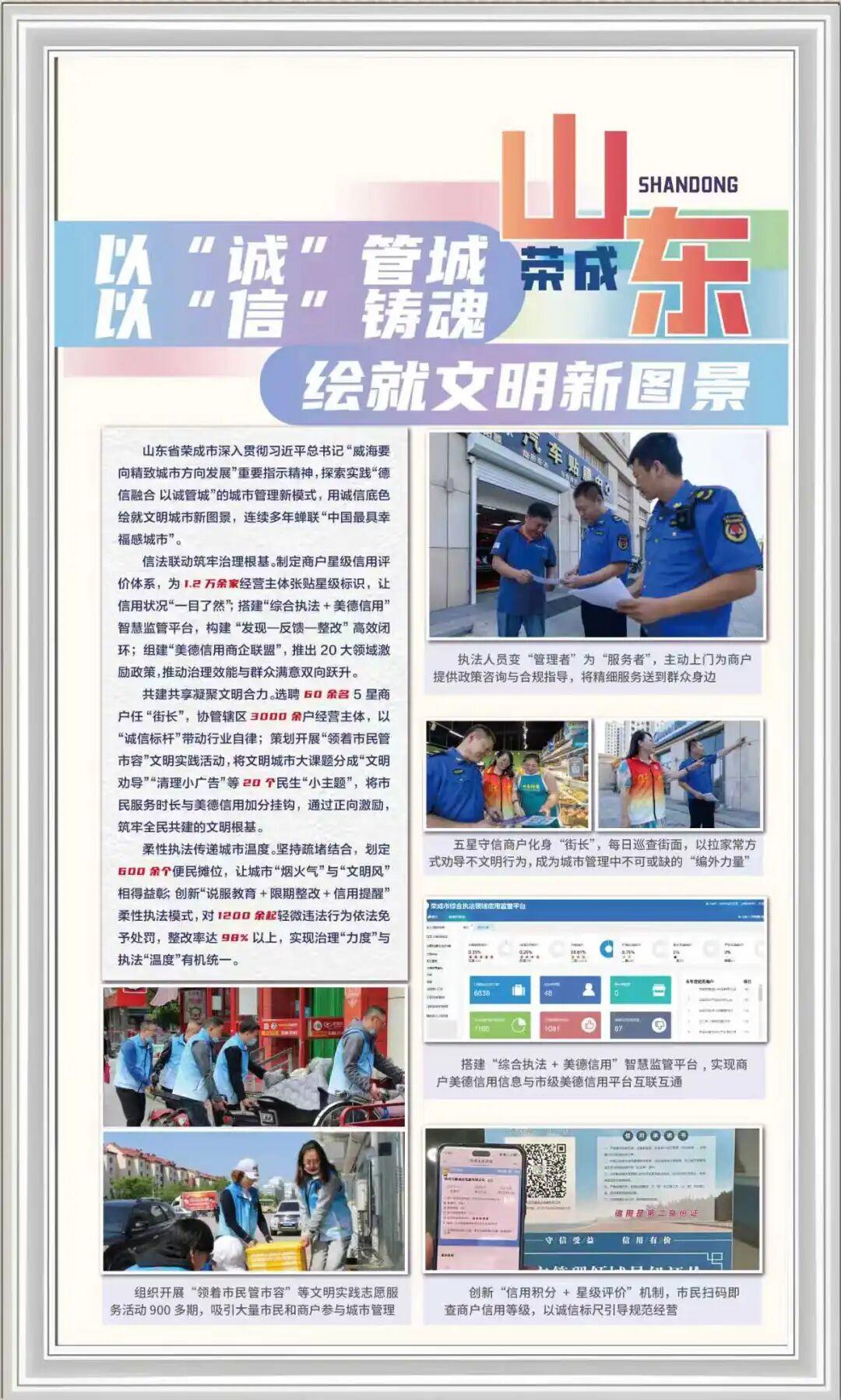 荣成市《以“诚”管城,以“信”铸魂,绘就文明新图景》,成功登上此次全国会议交流舞台,系全省唯一入选的优秀案例。