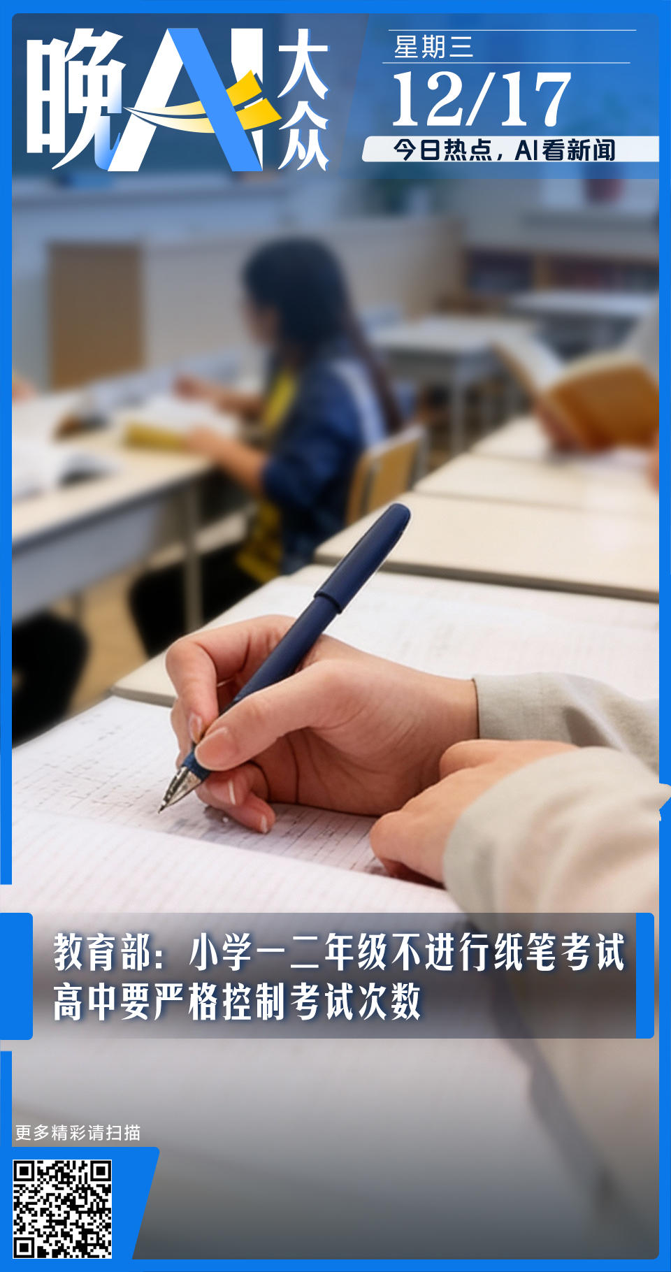 晚AI大众|小学一二年级将不进行纸笔考试;元旦火车票明天开售