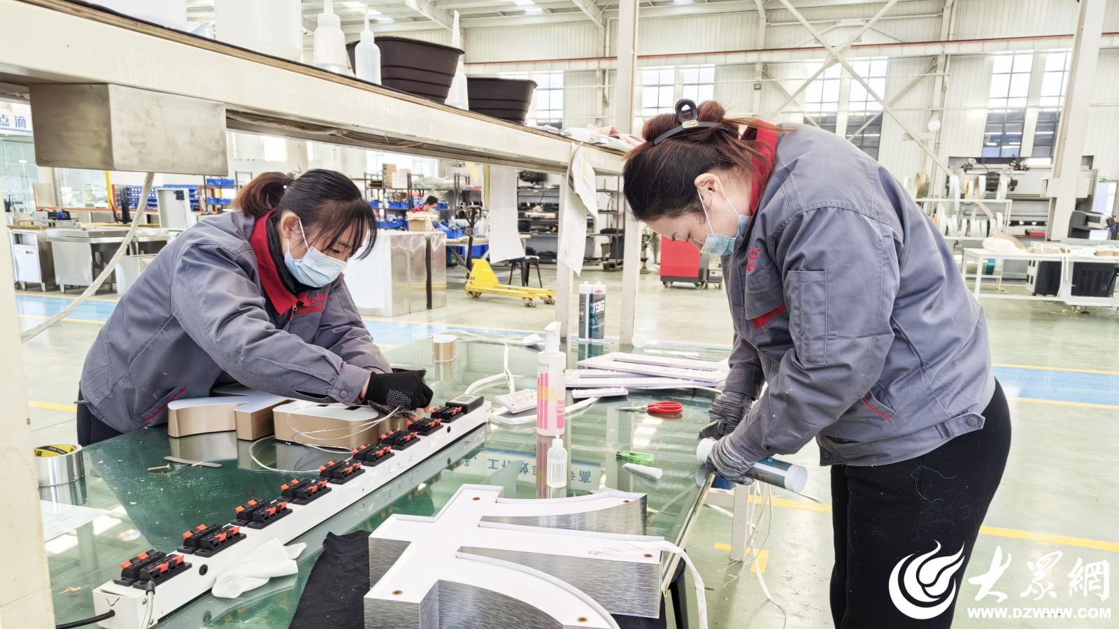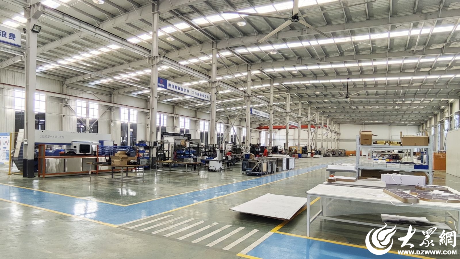 这些为顾客带来美好体验的装饰画、菜单屏、标识等,均出自当地一家工厂——花哚牌标(山东)厨房设备有限公司。走进该公司的车间,映入眼帘的是一片繁忙:不锈钢卷材切割、货架钣金、发光字排灯、菜单屏打印、覆膜打包……工人们分工有序,正加紧赶制订单。