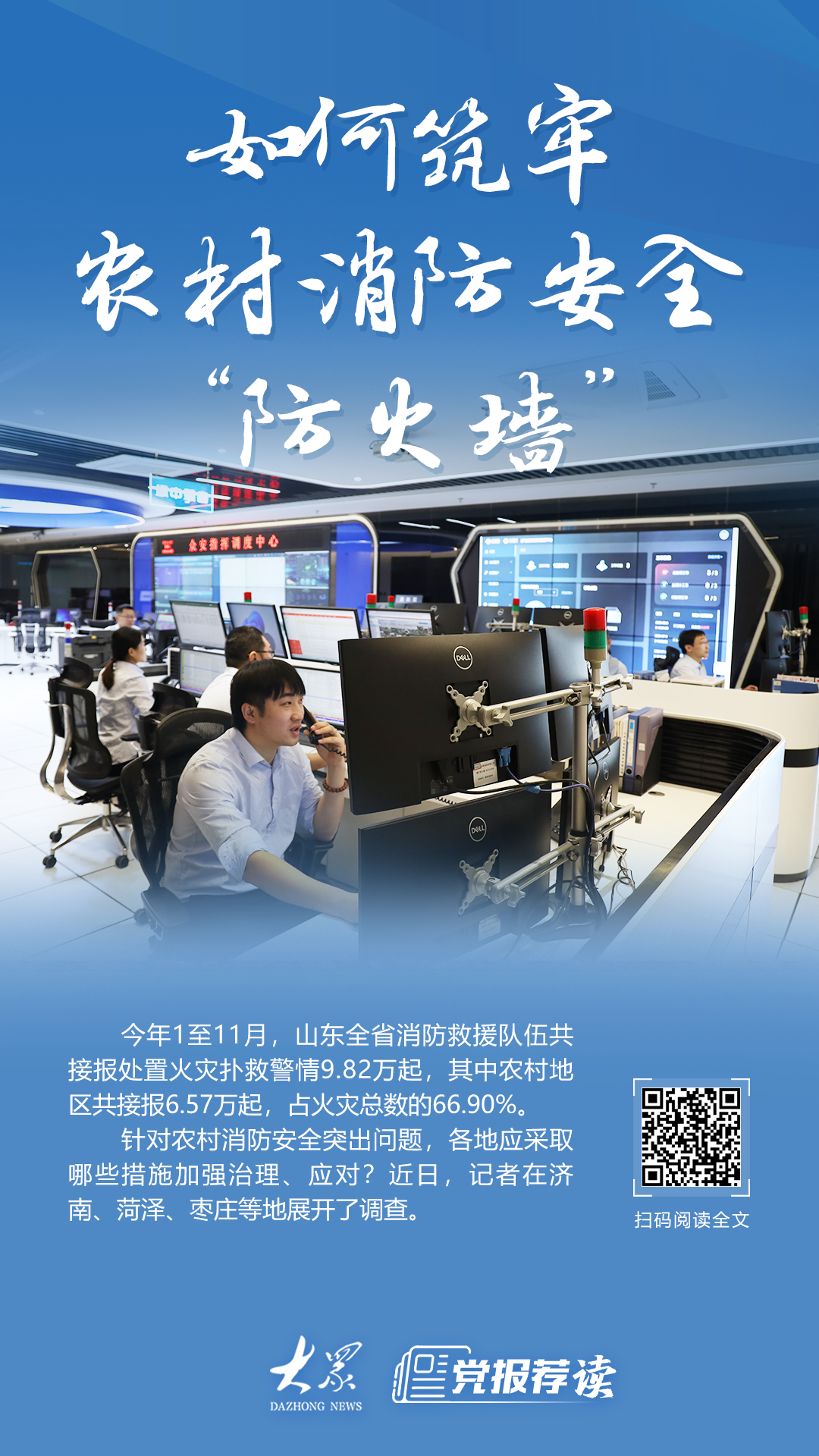 “农村消防安全关乎千家万户的安宁。”吴福军说,山东消防部门将继续联合有关部门,从基层基础、风险防控、宣传教育等方面综合施策,系统推进消防基础设施建设,针对性化解风险,全力夯实农村火灾防控基础。