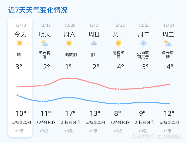 今天是12月18日,星期四,农历十月廿九。枣庄市天气晴转多云,气温在3℃到10℃之间,东北风1级,空气湿度为83%,PM2.5指数为92,空气质量良好。各区天气情况总体稳定,适合市民户外活动。明天枣庄市天气将由多云转晴,气温有所下降,最低气温为-2℃,最高气温为11℃。与今天相比,明天的气温略有下降,市民出行需注意保暖。未来三天,枣庄市天气趋势为晴转阴,随后可能有小雨转雨夹雪。气温将呈现波动,最高气温可达17℃,最低气温为-4℃。提醒市民根据天气变化及时增减衣物,特别是雨夹雪天气可能对出行造成影响,需注意交通安全。温馨提示