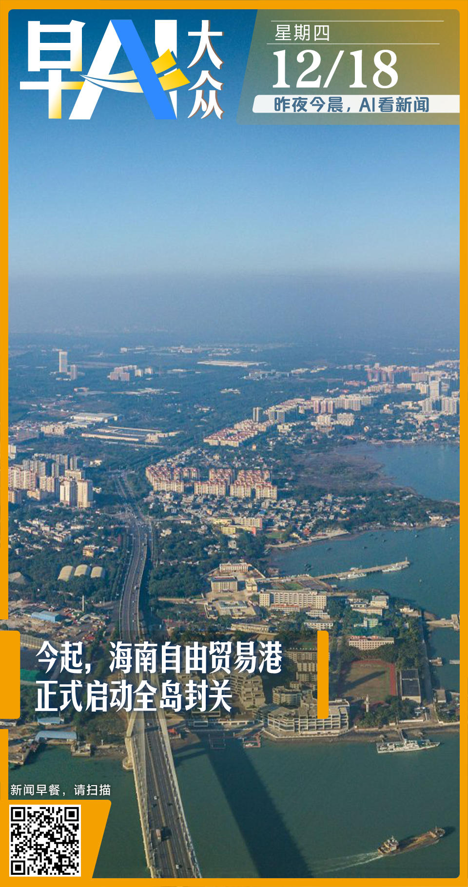早AI大众|今起海南自贸港全岛封关;受美封锁影响国际油价上涨近2%