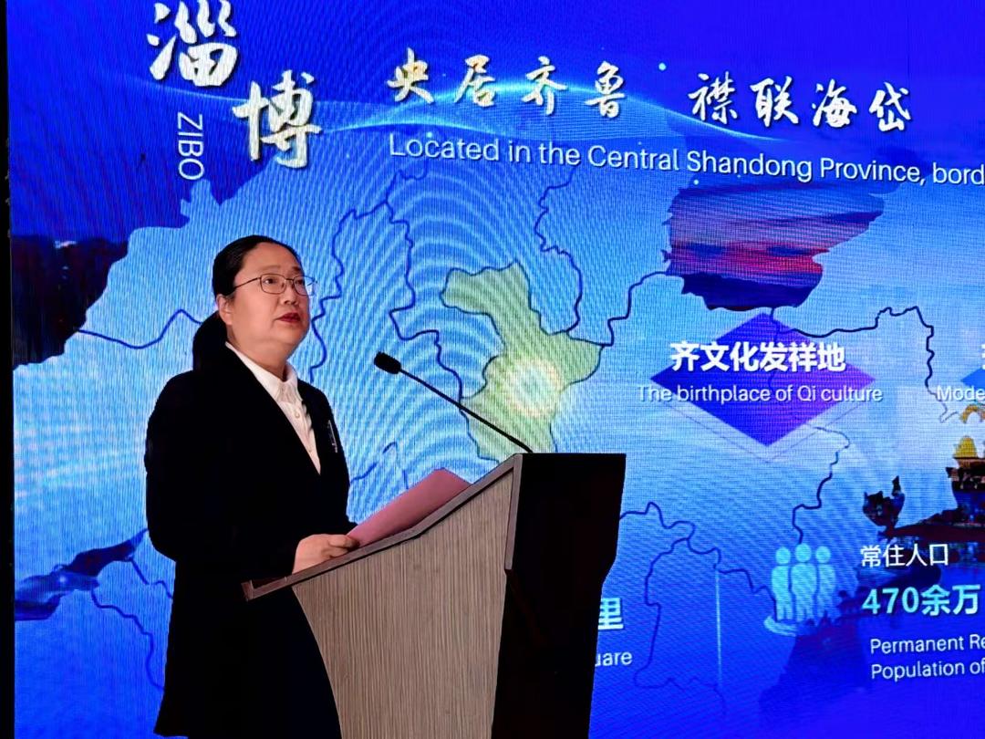 淄博市商务局党组书记李玲推介淄博产业优势,共享发展机遇。李玲表示,淄博产业兴旺、动能澎湃,现代工业历经120余年积淀,形成以石油化工、医药与医疗器械、纺织等传统产业为支撑,以新材料、新医药、智能装备、电子信息“四强”产业为引领的现代产业体系。新材料产业创新突破,新医药产业蓬勃发展,智能装备产业加速集聚,电子信息产业快速成长,“四强”产业增加值占比达60%。20条重点产业链年营业收入达5200亿元,化工产业规模居中国地级市第4位,220余种产品产销量居全国前三。门类齐全、配套完善的产业体系和优越的营商环境,为企业在淄投资兴业提供了丰沃土壤。