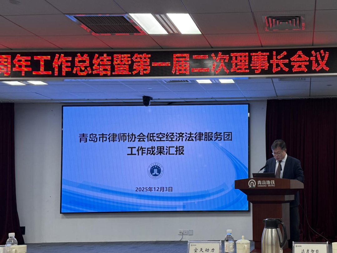 12月3日下午,青岛市低空经济联盟在青岛地铁集团召开“联盟一周年工作总结暨第一届二次理事长会议”。市律协低空经济法律服务团作为联盟新设“法规标准组”组长受邀参会,市司法局法律服务管理处副处长赵健全、市律协会长魏克泰、名誉会长王亚平、副会长韩大更出席会议。