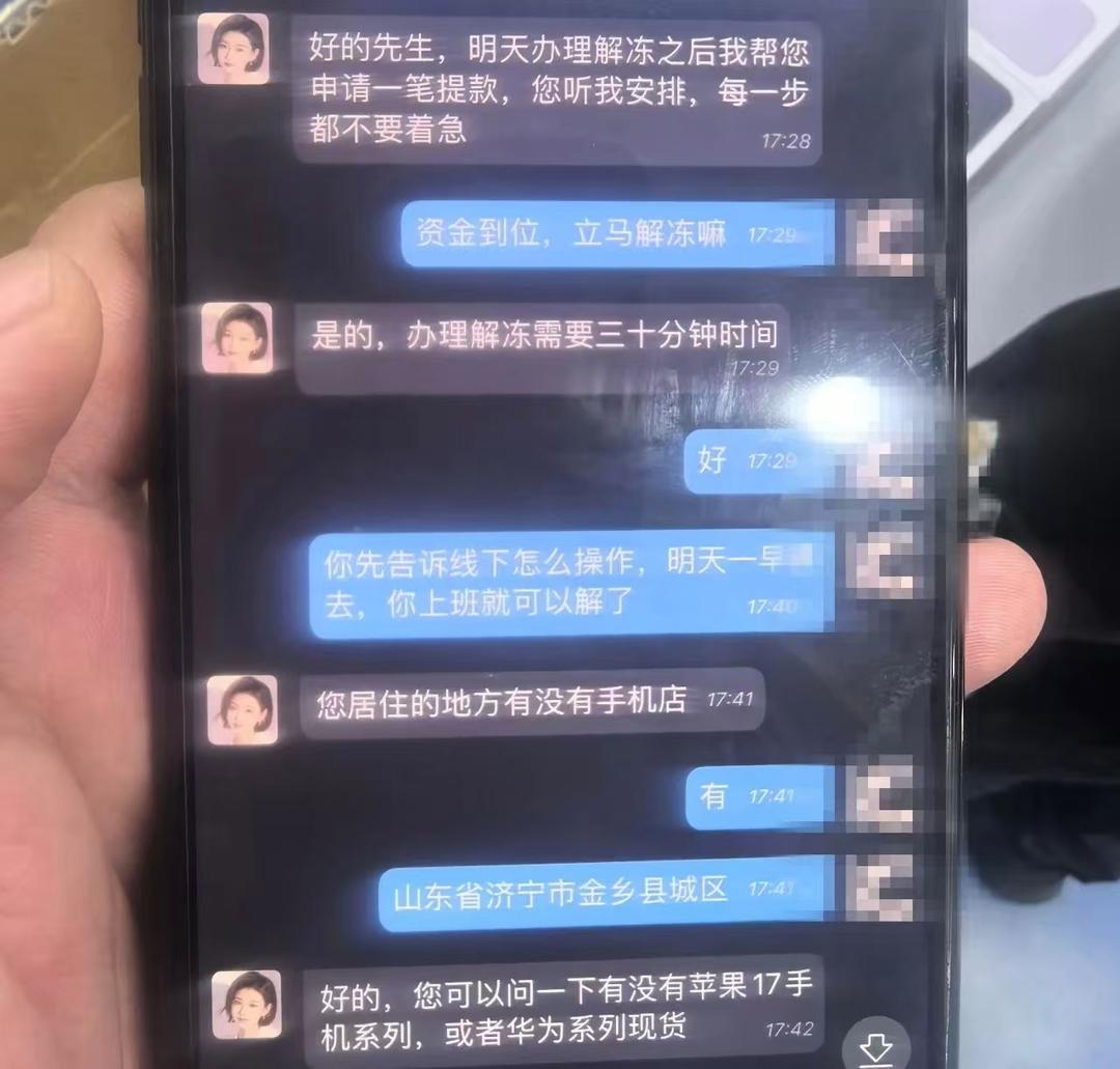 专案组迅速与全县手机销售门店建立联动预警通道,推送相关风险特征信息,指导工作人员识别并阻断可疑交易。当日下午,中心街某手机专卖店反馈:一男子一次性全款购买14台高端手机,总价91986元,行为特征与预警信息高度吻合。经核查确认,购机人即为王某,其正乘坐一辆前往泰安方向的运输车辆。民警尝试联系王某时,其坚称未遭遇诈骗,言语表现出明显被误导操控的迹象。