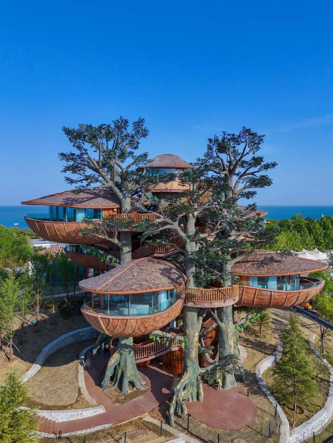 442间特色客房,充满童话想象的网红树屋“林间之巢”、风格各异的积木客房、度假木屋、小海森亲子房及海景房等,成为亲子家庭的热门打卡地。约5万平方米的室内外水乐园中,全年30℃恒温的室内场馆打破季节限制,与户外海景无缝衔接——步行三分钟即可经如意桥直达海边,真正实现 “玩水看海,四季皆宜”。