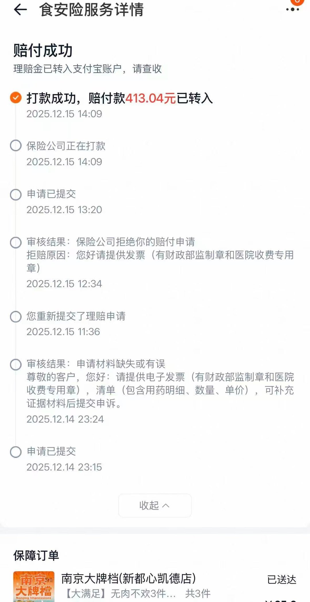 事件发生后,小张第一时间向淘宝闪购平台及涉事商家投诉。目前,淘宝闪购已为小张赔付医药费及订单退款共计400余元,但小张提出的1000元误工费追偿诉求尚未得到解决。小张表示,此次青岛之行是两人特意请假规划的,食物中毒不仅损害了身体健康,更导致行程泡汤,误工费及后续检查费用的追偿是合理诉求。