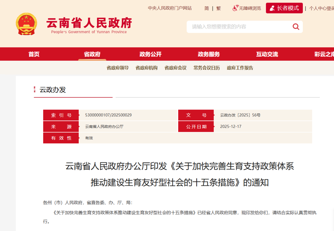近日,云南省人民政府办公厅印发《关于加快完善生育支持政策体系推动建设生育友好型社会的十五条措施》的通知。