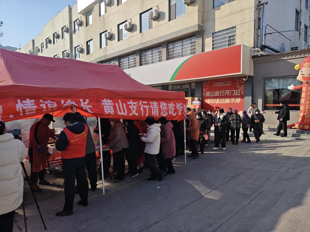 “没想到来银行办事还能喝上这么地道的农家汤!”一位常来办理业务的老客户捧着汤碗感慨道,“这天气喝上一口,全身都暖和了,黄山支行真是有心了。”活动现场,客户们或站或坐,相互交流,原本只是办理业务时的点头之交,在这碗热汤的催化下,变成了亲切的邻里寒暄。