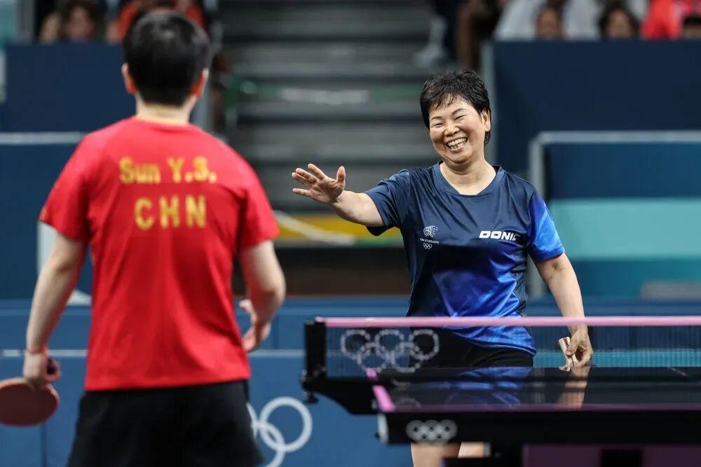 笔者最后一次现场看倪夏莲比赛,是2024年奥运会,女单第二轮对阵世界排名第一的孙颖莎,结果是0:4失利,她与孙颖莎38岁的年龄差也被外界称为“祖孙大战”。在赛后的采访中,我问倪大姐下届奥运会还会看见你吗?她笑着说,她还没想好。