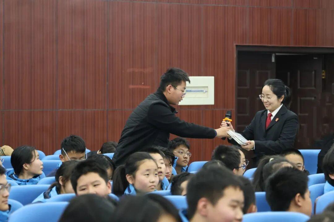 庭审结束后,“青少年法治小课堂”环节继续开展。民一庭法官助理吴雪微结合典型案例,用通俗易懂的语言,结合鲜活典型的案例,为同学们带来了一堂生动的法治课。