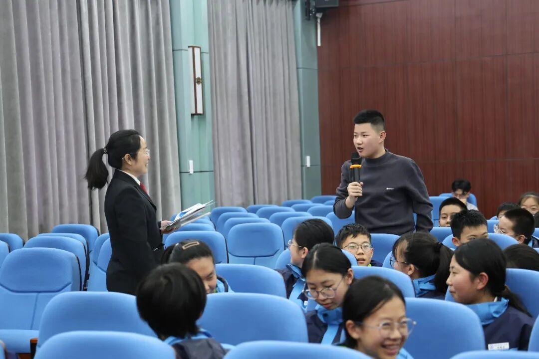 “你喜欢拳头还是击掌的方式解决问题?”“如果把同学打伤了,会承担什么后果?”面对提问,同学们争相举手,纷纷讲述自己的看法,互动环节气氛热烈。