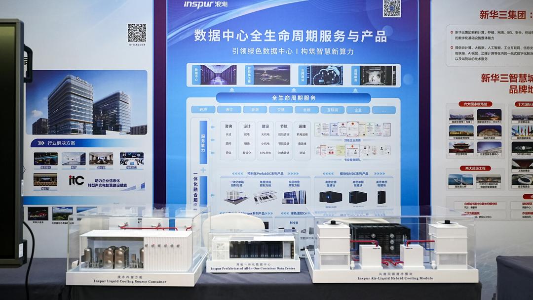 展会现场,浪潮通信信息系统展出了覆盖数据中心规划、建设、运营全环节的先进产品与解决方案,包括微模块、冷站方舱、风液同源液冷冷源方舱等预制化产品,冷板式液冷、蒸发热管多联、AI能耗一体机等节能设备,以及智能母线、智能电力模块等高效输配电产品。同时,还展出了动环监控系统与综合管控一体机等智能管控一体化方案,吸引众多参会专家与企业代表驻足交流。
