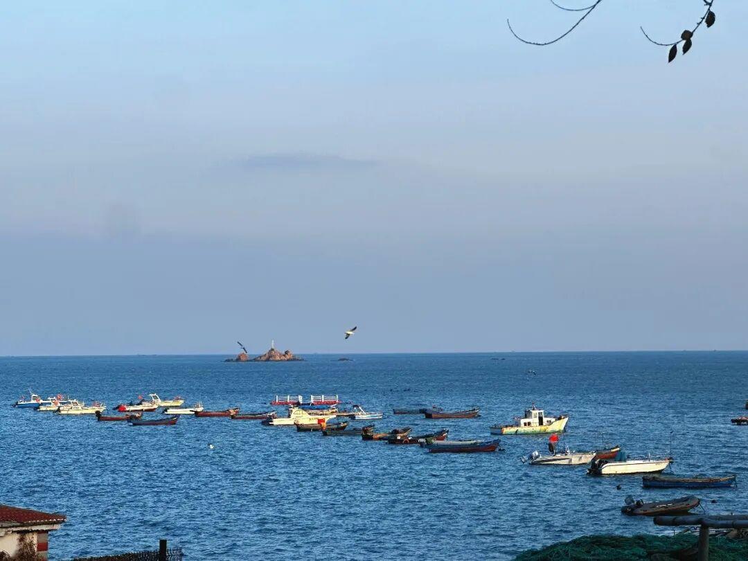 漫步于此,首先映入眼帘的是一道别致的海滨风景:通往海边的栈道上,轮胎被涂上蓝白油彩,显得清新活泼。路两侧还可以看到遍地的海星,这是大海留在陆地上的浪漫痕迹。走到海边,深邃而层次分明的蓝绿色海水瞬间占据视野。凭栏远眺,北可望黑岛,南可观刘公岛,渔船星星点点,画面壮丽开阔。冬季极高的能见度,让眼前的一切都清晰坦荡。你可以在此长久驻足,听海浪拍打礁石,看海鸥轻盈掠过,任凭清冷的海风吹散所有烦扰。