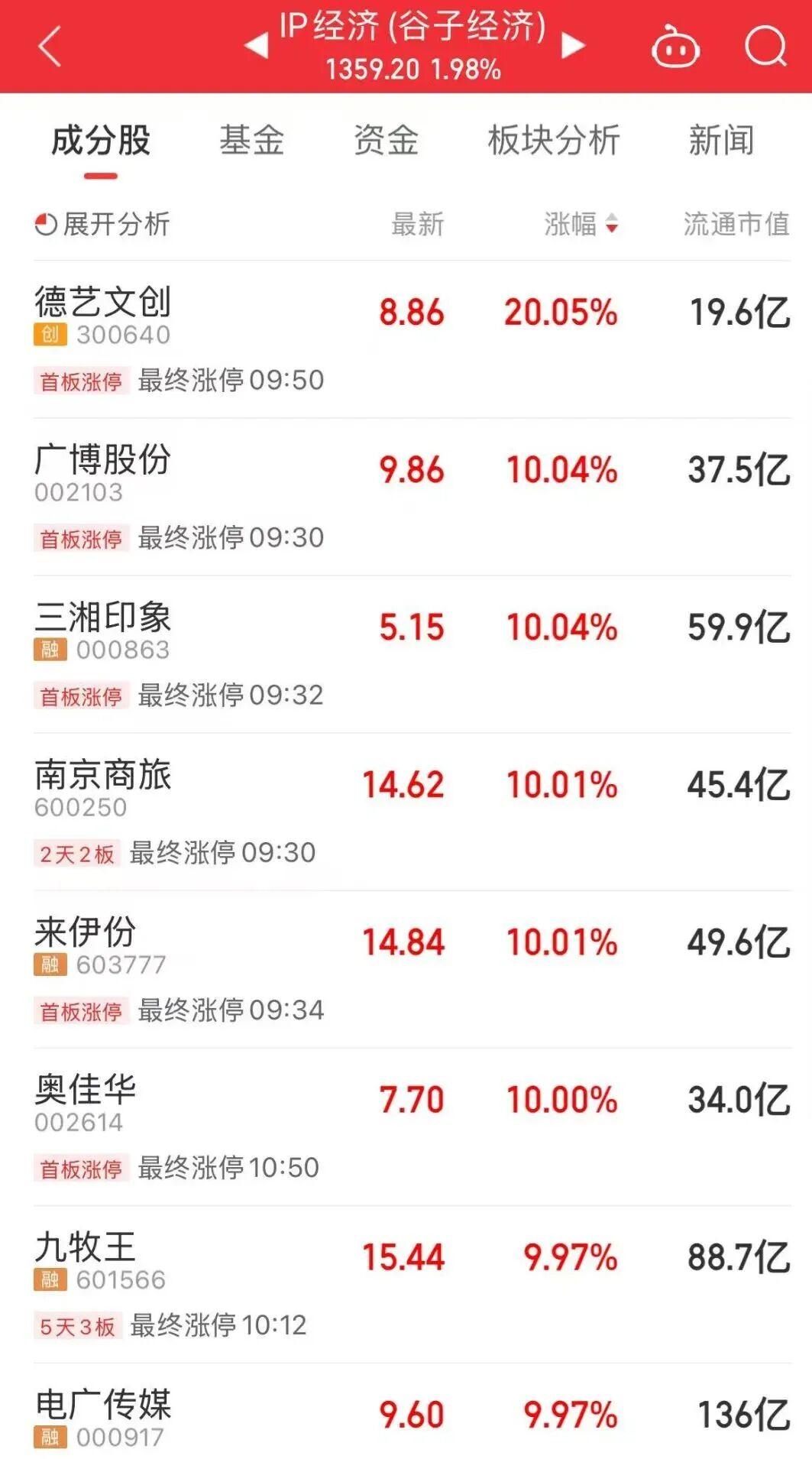 今天上午,犒赏经济概念上涨,广博股份、奥佳华、瑞贝卡、德艺文创等多股涨停。