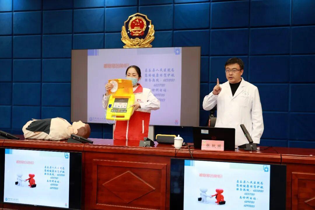 张跃国围绕“急诊急救知识”展开系统讲解。结合公安一线工作实际,张跃国重点介绍了心脏骤停的常见病因与急救黄金时间,详细演示了心肺复苏(CPR)的操作流程、注意事项以及自动体外除颤器(AED)的正确使用方法。
