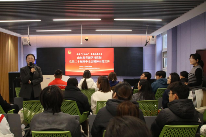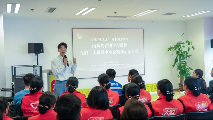 为深入学习贯彻党的二十届四中全会精神,推动全会精神在青年群体中落地生根,近日,山东共青团学习贯彻党的二十届四中全会精神示范宣讲在济南举办。活动以“奋进‘十五五’ 青春挺膺担当”为主题,组织青年宣讲骨干分别走进山东青年政治学院、山东大智控股集团股份有限公司,面向高校学生和新兴领域青年群体,通过“理论阐释+故事分享”的方式开展分众化、互动式宣讲,100余名青年现场参加。