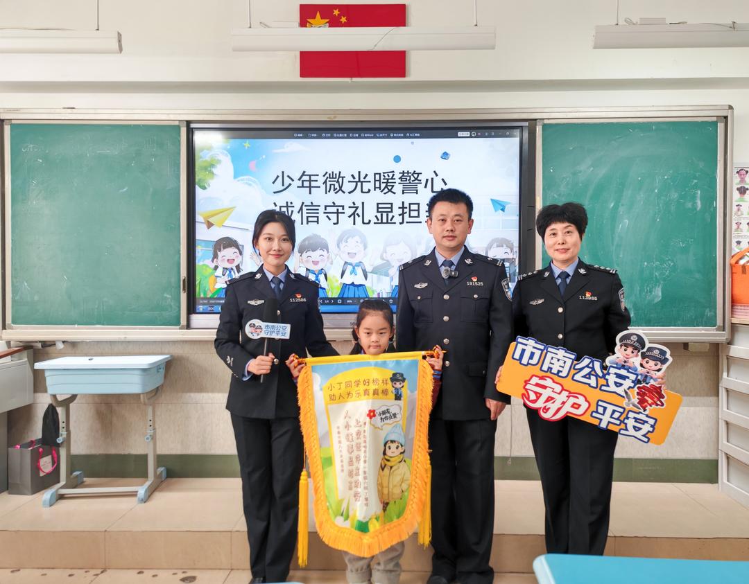 考虑到丁慧玟的善举不仅帮助了失主,更展现了新时代少年的良好品德,市南分局决定专门走进校园,为她举办一场特殊的表彰仪式,用实际行动传递“善举有回响”的正能量。