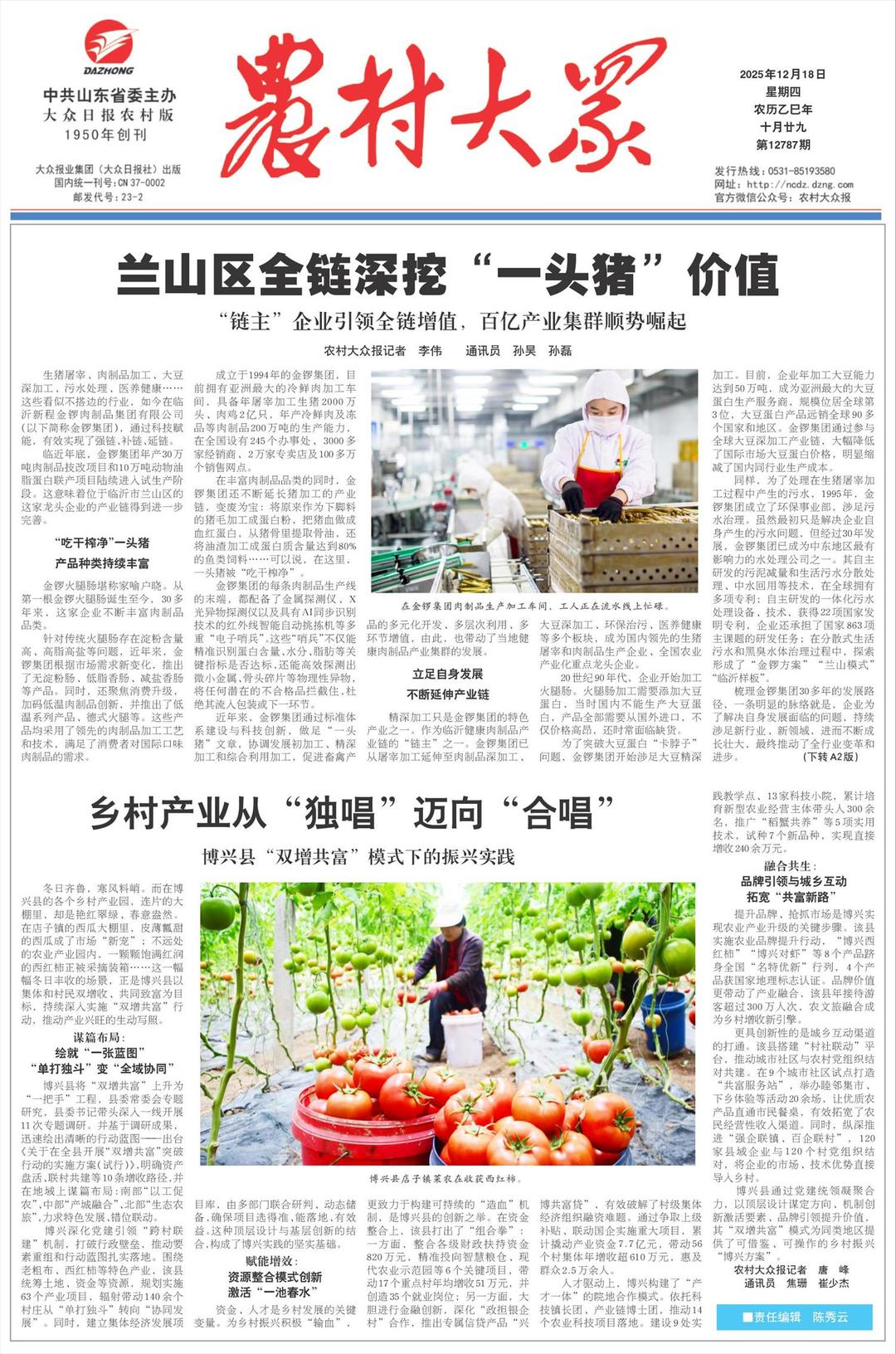 今日报纸头条 | 兰山区全链深挖“一头猪”价值