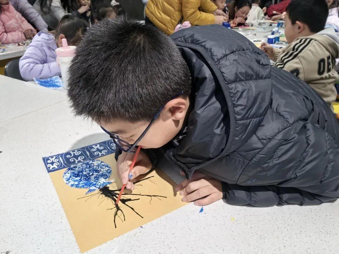 孩子们细心点染青花瓶身,用棉签轻触出梅花点点,再勾勒桌布纹样,一步步完成充满诗意的画面。过程中,他们表现出良好的耐心与专注,对中国传统器物与梅花寓意也有了更深的感受,作品清新雅致,充满文人画意趣。看着自己完成的“青瓷映梅”图,孩子们脸上满是专注后的成就感与骄傲~