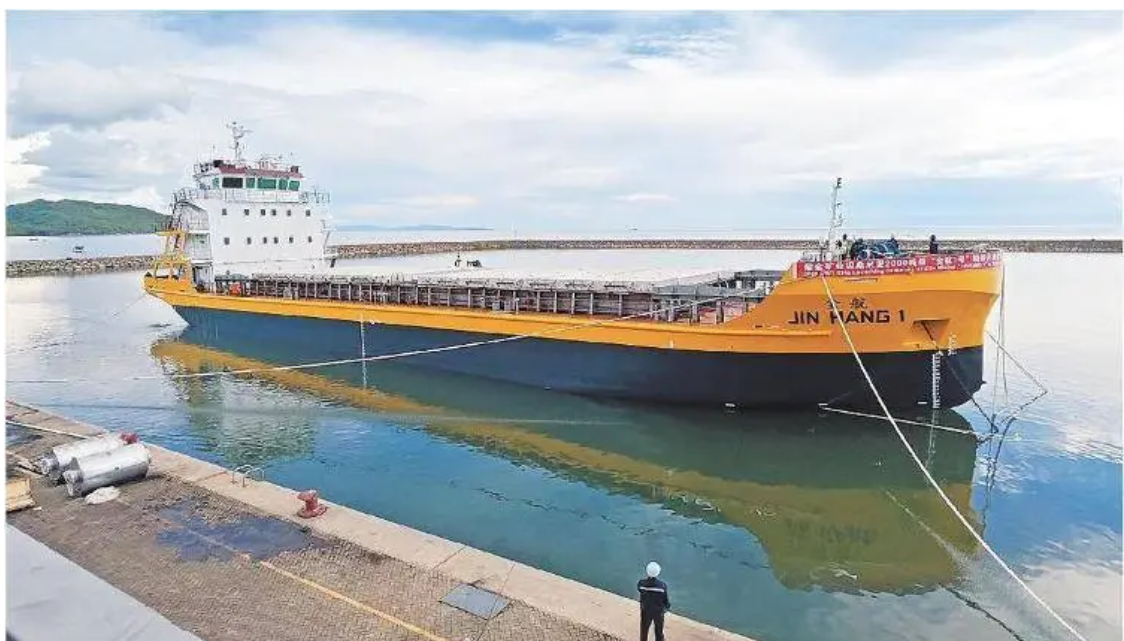 今年11月,新能船业为紫金矿业设计建造的散货船在坦桑尼亚顺利下水。通过“模块化建造+异地总装”的方案,新能船业将船舶分段在山东工厂预制完成后,通过海运运至坦桑尼亚,在当地完成总装。