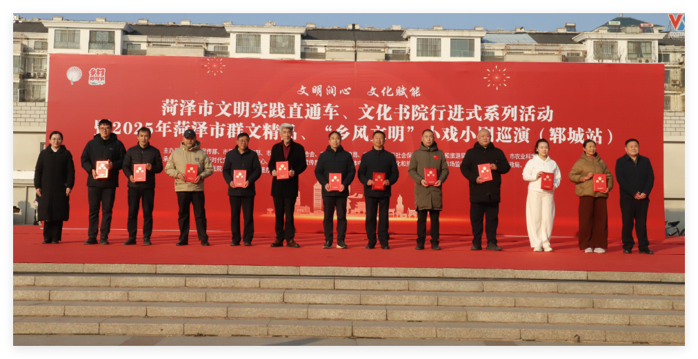 “四中全会新蓝图,疾风扬帆再起航……”12月17日,郓城唐塔广场上,欢快的快板旋律伴着冬日暖阳回荡,吸引了大批市民驻足。当天,菏泽市文明实践直通车、文化书院行进式系列活动暨2025年群文精品、“乡风文明”小戏小剧巡演走进郓城,一场文化惠民盛宴在此热闹开启。