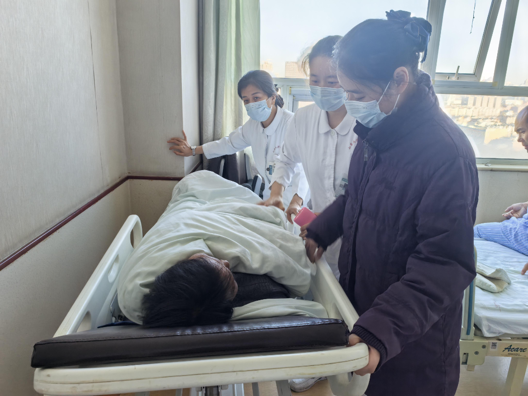 上午九点,责任护士姜晓迪像往常一样认真巡视病房,当她走到60床时,目光突然定格在陪床老人身上,原本坐在床边的老人,此刻身体瘫软地靠在椅背上,面色苍白,嘴唇不停抖动,四肢无力,询问无法言语,姜晓迪立刻意识到情况紧急,迅速上前,一边安抚老人不要惊慌,一边协助卧床,第一时间拨通了护士长崔霞的电话。崔霞查看老人情况,一边测量生命体征,一边立刻联主管医师王敏卿,详细汇报了老人的症状表现。医护人员凭借丰富的临床经验,考虑家属可能发生急性脑血管病,需要紧急救治。