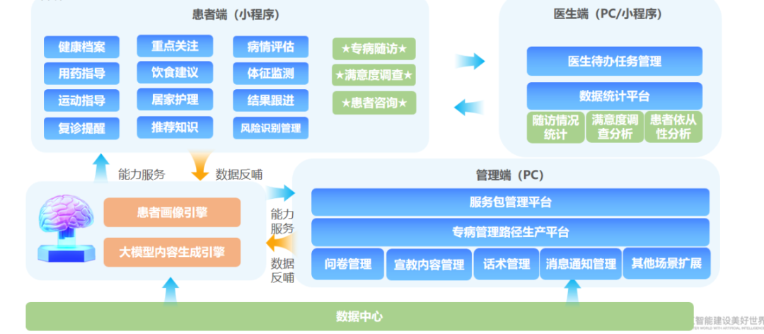 为更好地满足患者全生命周期的健康管理需求,医院整合资源正式成立全程患者管理中心,该中心依托先进的人工智能平台和认知大模型技术实现患者数据的自动采集、智能分析与实时预警,从而及早识别风险、实施精准干预。